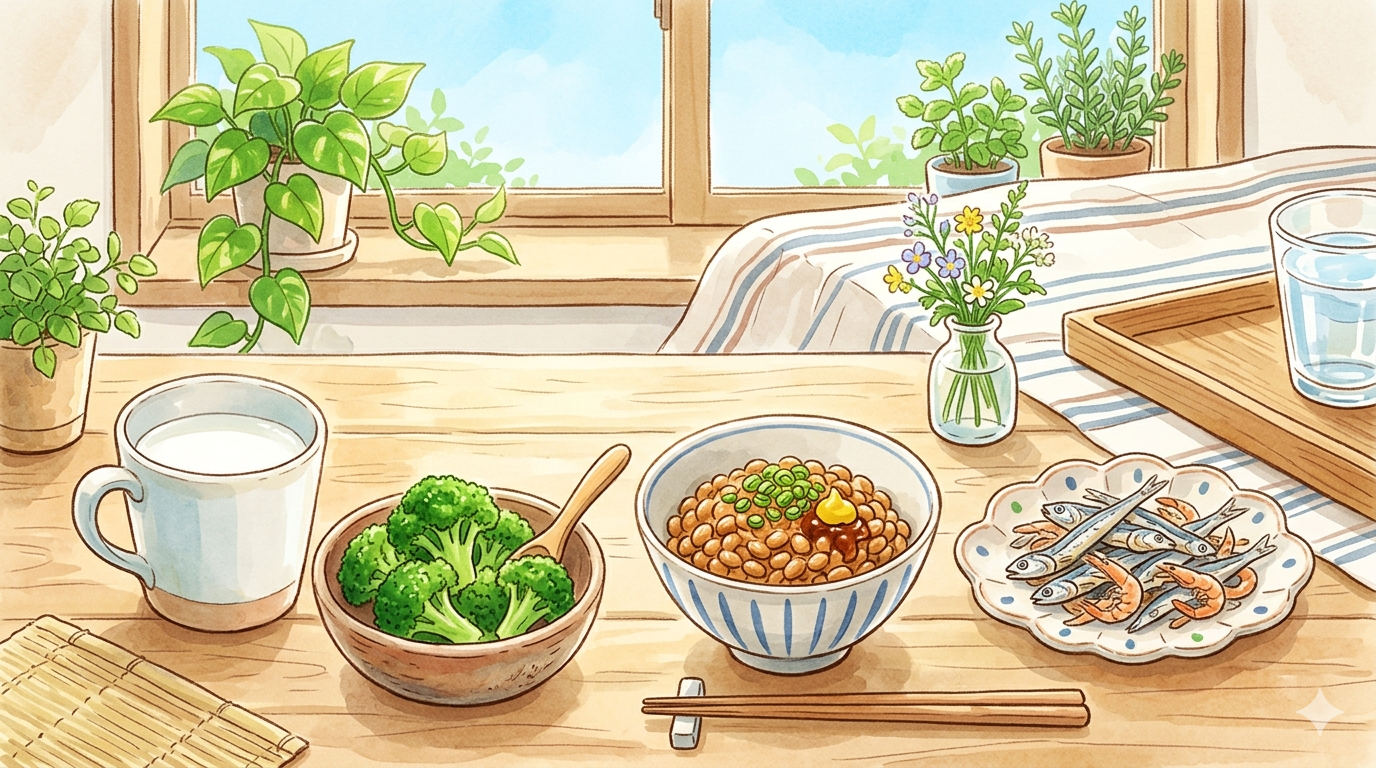 骨の健康は、毎日の小さな積み重ねで支えられます。カルシウム、ビタミンD、ビタミンK、タンパク質を意識しながら、無理のない食習慣を続けていくことが、骨粗鬆症予防の第一歩です。